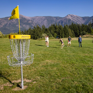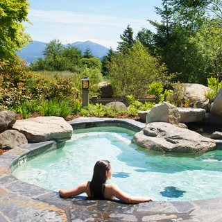 Splash or soak at Skamania Lodge with views of the Columbia River.